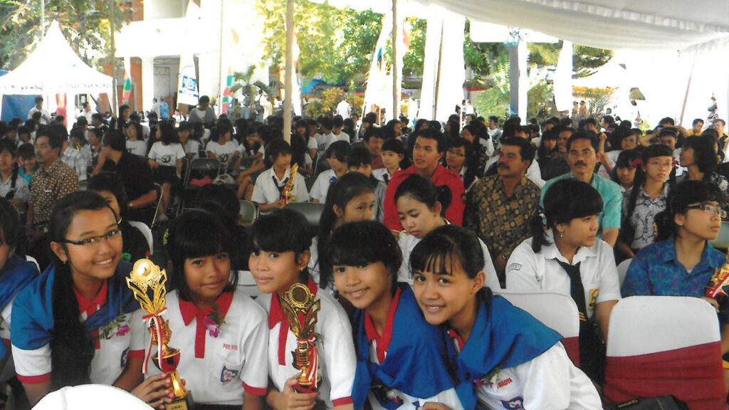 私が教員をしていた頃、バリ島の高校から創立50周年記念式典に来賓として招かれるという貴重な機会をいただきました。式典の前日には校長先生や新聞記者の方々と会食し、「日本から教師が記念式典に参加する」という出来事が現地の新聞に掲載されました。式典当日は市長をはじめ多くの来賓が集まり、高校生による伝統的なバリ舞踊(神に捧げる踊り)で幕を開け、熱気と華やかさに包まれました。市長への表敬訪問では、副市長ともご挨拶を交わし、現地の方々の温かい人柄に触れることができました。