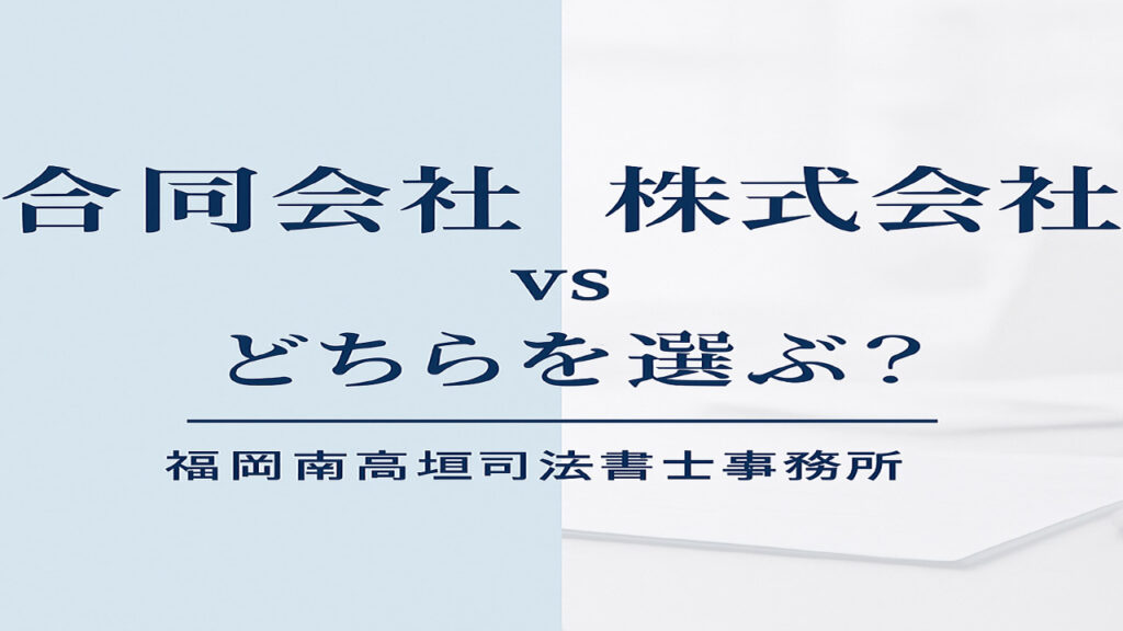会社設立で「合同会社」か「株式会社」か迷っていませんか。両者の 設立費用・手続き・運営コスト・信用力の違いを、福岡の司法書士 福岡南高垣司法書士事務所がわかりやすく解説します。